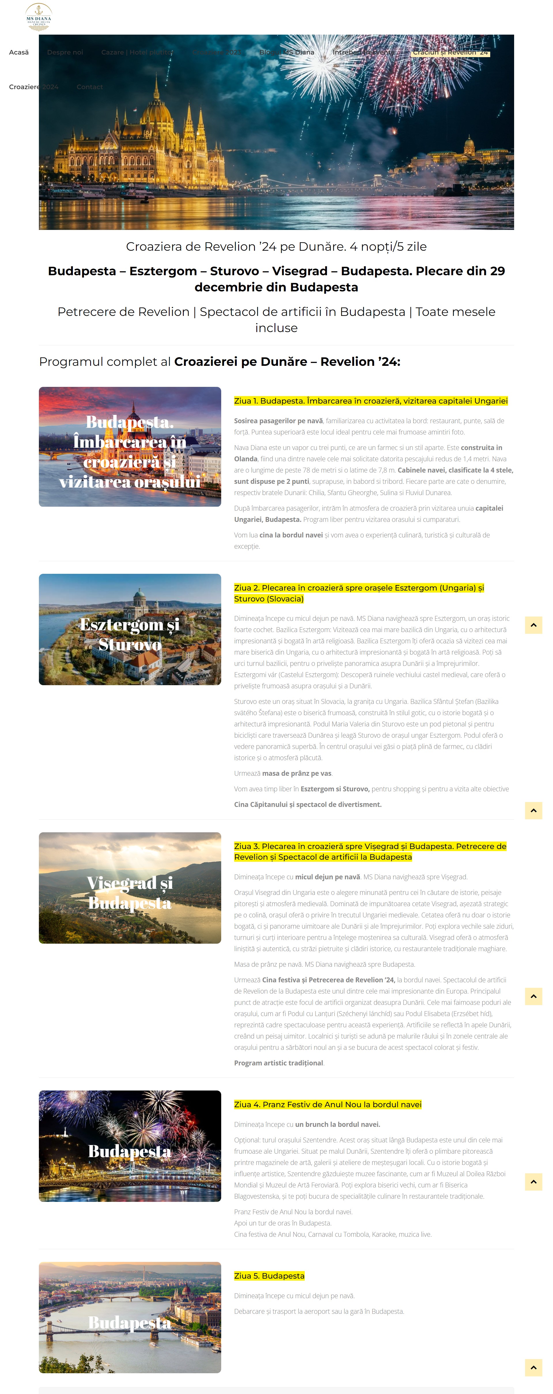 CroaziereDunăre.ro este cea mai mare firmă din România care organizează croaziere pe Dunăre. Croazierele se adresează atât turiștilor români cât și străini. La bordul navei de croazieră MS Diana sunt invitați turiștii care vor să se bucure de condițiile ridicate de confort, să viziteze porturi interesante pe Dunăre și să petreacă timp de calitate alături de cei dragi.