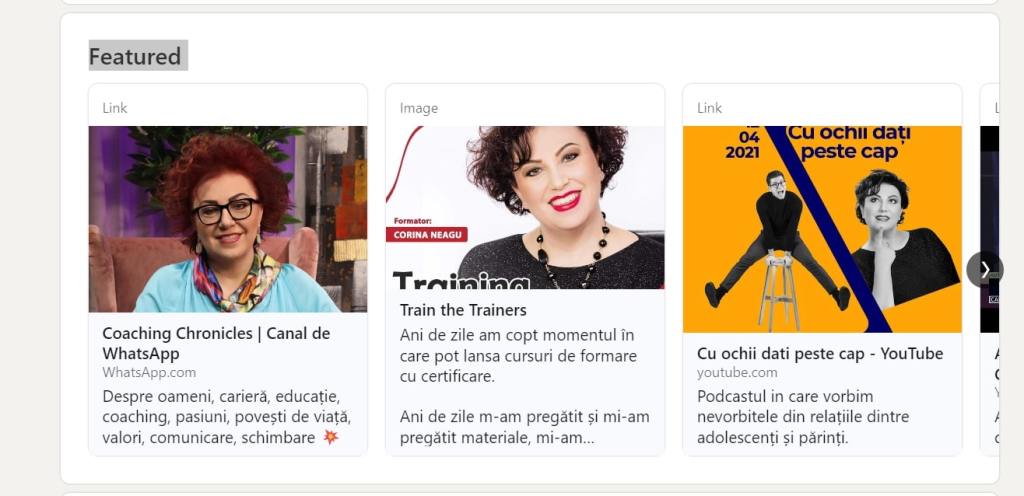 - Featured – secțiunea de articole și postări scoase în evidență de pe profil.