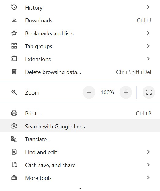 - În Google Chrome, deschizi opțiunea Google Lens