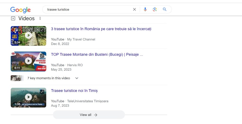 - La anumite căutări, Google deja afișează direct rezultate video – deasupra de rezultate de tip text. Filmul tău, odată plasat pe YouTube, are șanse să apară singur la rezultatele organice.